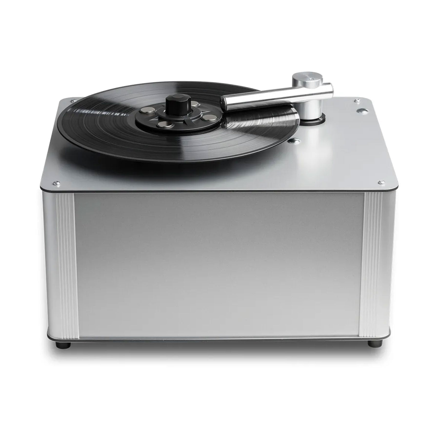 - robust metal vacuum arm thoroughly deep cleans vinyl grooves from dust + debris